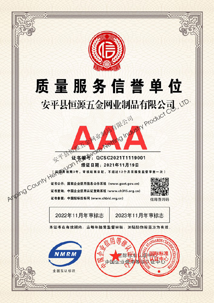 多年來,安平縣恒源五金網業制品有限公司堅持“科技興企、質量立業”的經營理念和“誠心為本、客戶至上”的合作宗旨,優化生產工藝,打造優質產品,提供完善的服務,受到國內外客戶的一致好評,產品行銷全國各地,并出口美國、德國、韓國、日本、臺灣等國家和地區。